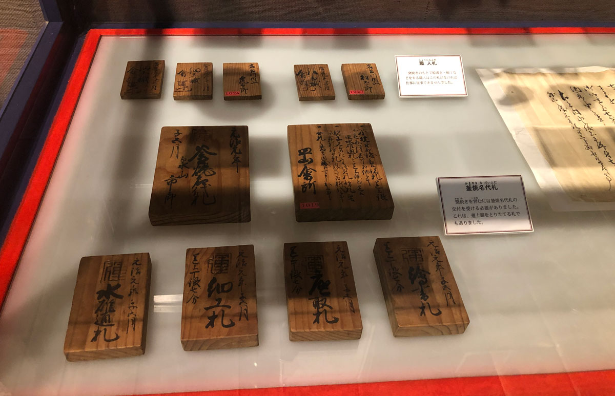 江戸時代、有田焼が藩の統制下にあった、それを明確に示す資料が、この窯焼名代札とそれに付随する職人札です。今で言う営業許可証と免許証でしょうか。厳密にそれらとは異なりますが。札の後ろには、運上銀つまりかかる税金の金額が書かれており、しっかりと藩がお金を徴収する仕組みが出来ていたわけです。これらの札も発行枚数が決められており、無闇に乱発することはできませんでした。