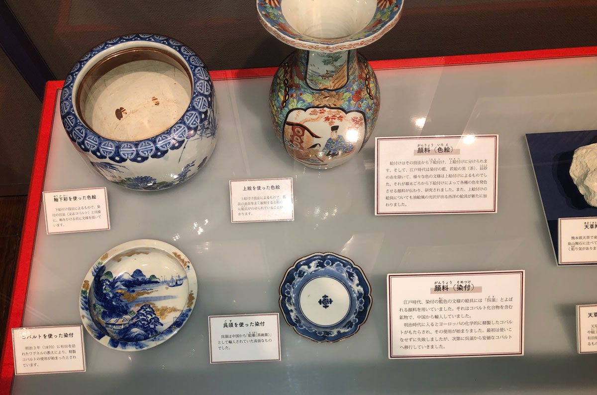 原料自体の変換に加え、こちら呉須から合成コバルト顔料への変換というふうに、この辺りのコーナーが、江戸から明治への新しい技術への転換を表したものです。