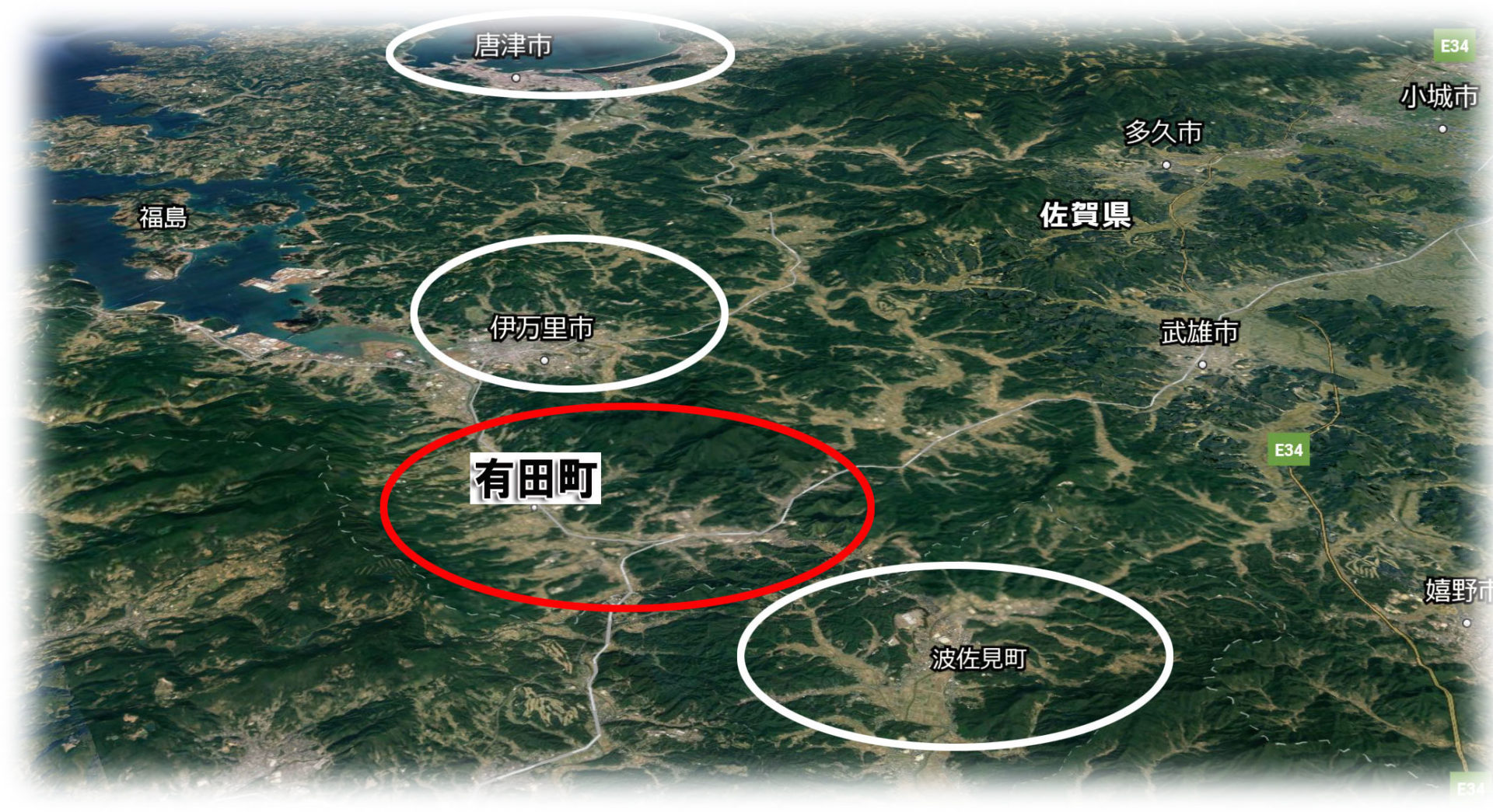 波佐見町と有田町は、お互いに県境で接しています