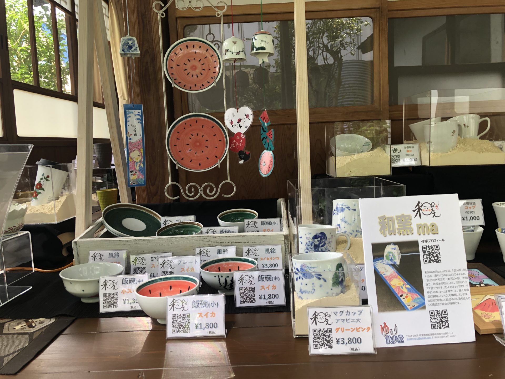 縁側南側に回って、左に和窯maさんのコーナーです。相変わらず多忙な松尾さんですが、お身体の調子を壊さないように…♪
